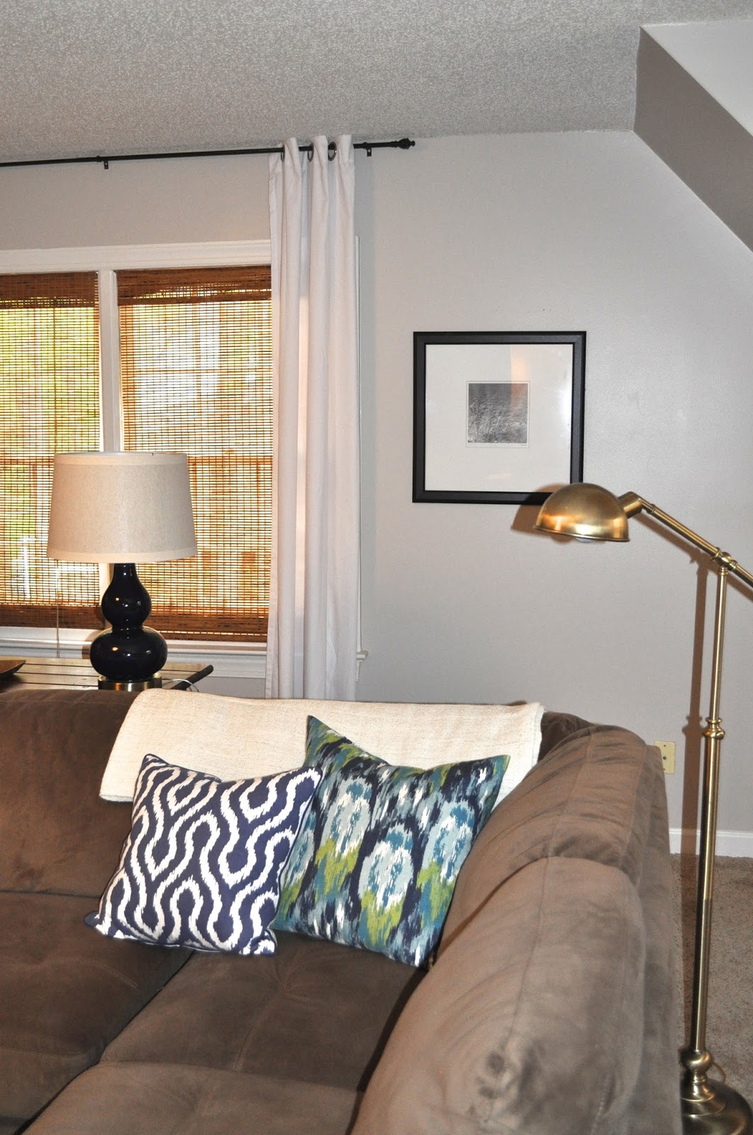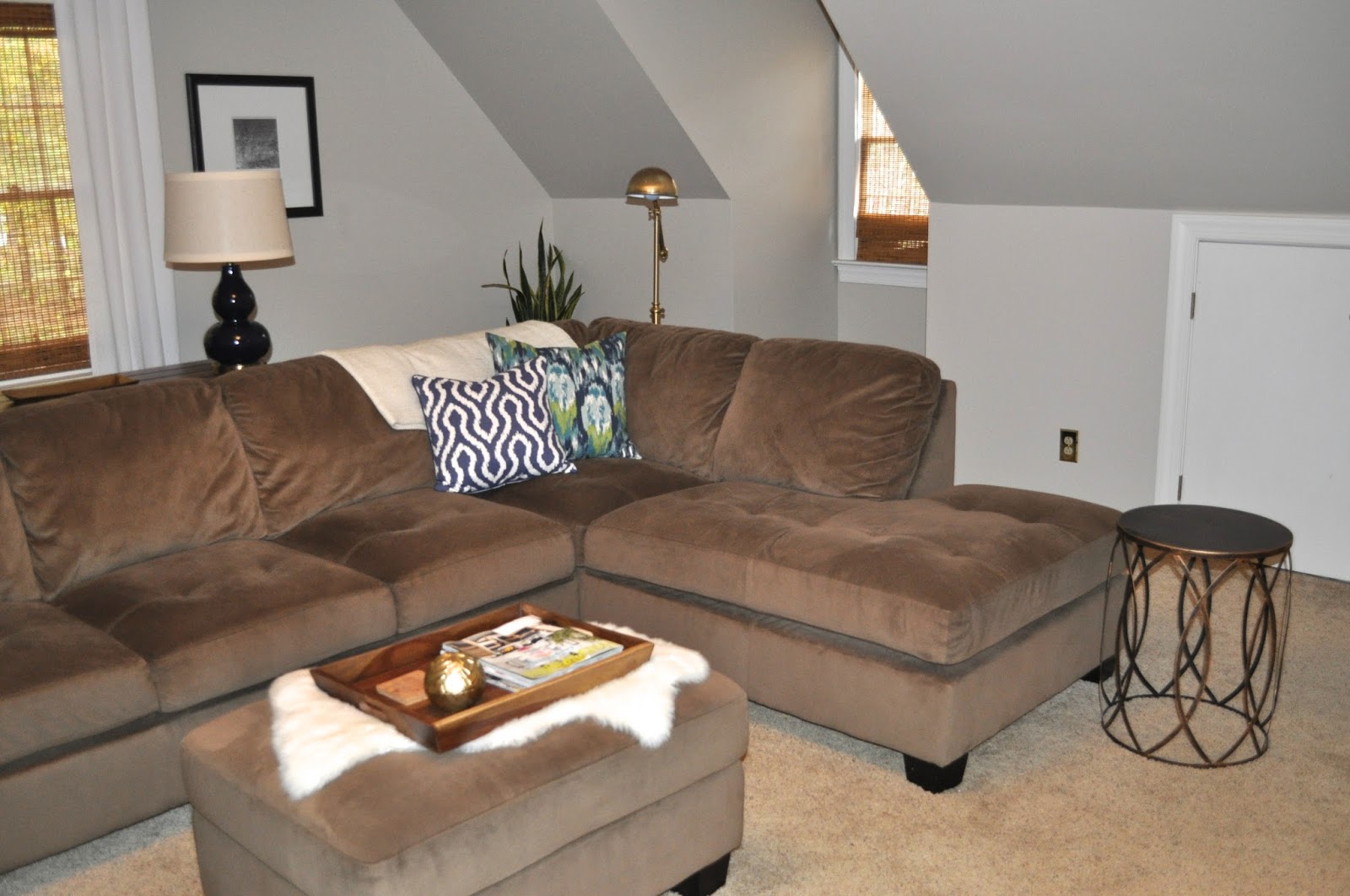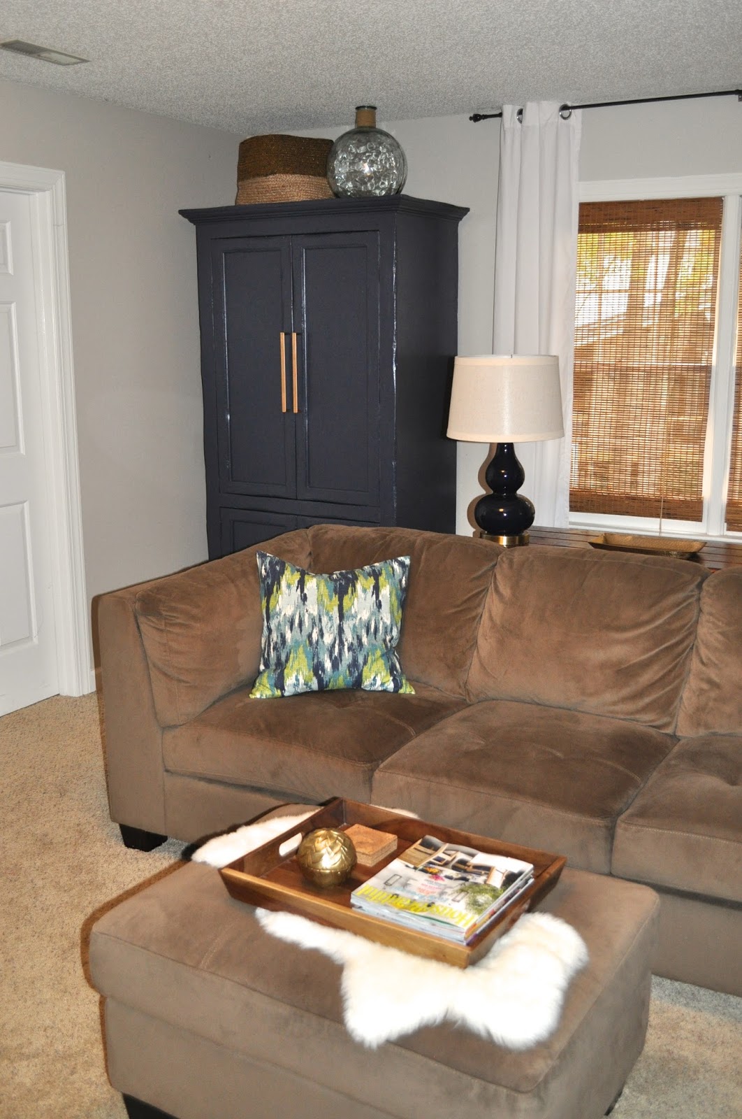 We also added simple bamboo shades. I LOVE the texture they add, and since we watch movies in this space, they block out the perfect amount of light.