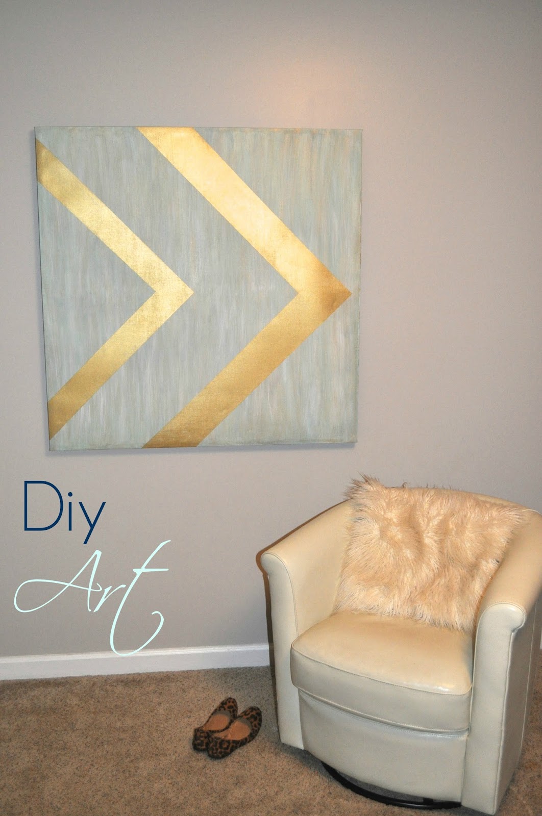 And check out my Diy Art below. This canvas is actually the same one from the Before picture! I simply primed over that dark art and painted it using a color combination of turquoise, cream and gold. You can read more about the first part of this project here. Then this past week-end with scotch blue painters tape I added the gold stripes. I may change my mind down the road. But for now, and not wanting to buy a new $300 large art piece, we think it's a lot of fun!